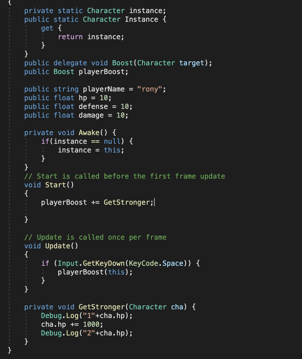 델리게이트 선언 -> 델리게이트 추가+=들어갈 함수 -> 델리게이트 실행