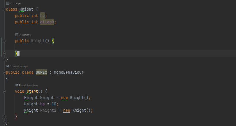 knight와 knight2를 구분하려면 knight2에 new로 새로이 생성 해주면 된다.