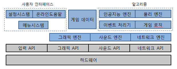 이때, 그래픽, 사운드,네트워크등의 다양한 시스템들이 사용되어 지고, 우리가 게임할때 보여지는 결과물이 보여지게 됩니다.