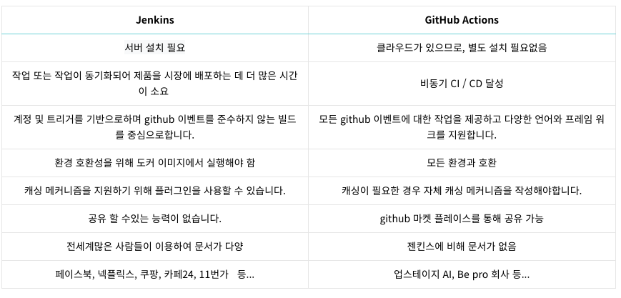 Github Actions : public 무료, private 유료 after 500MB 스토리지와 실행 시간 2,000분(minute), 클라우드 서비스, 쉽지는 않다, 확장성 좋음, 소규모 프로젝트에 적합