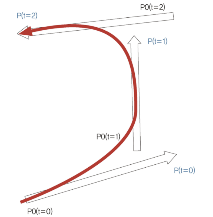 - 캐릭터 원본이 있는 쪽(이쪽)을 P0이라 하며 P0(t)는 시간 t에서 원본 위치이다.