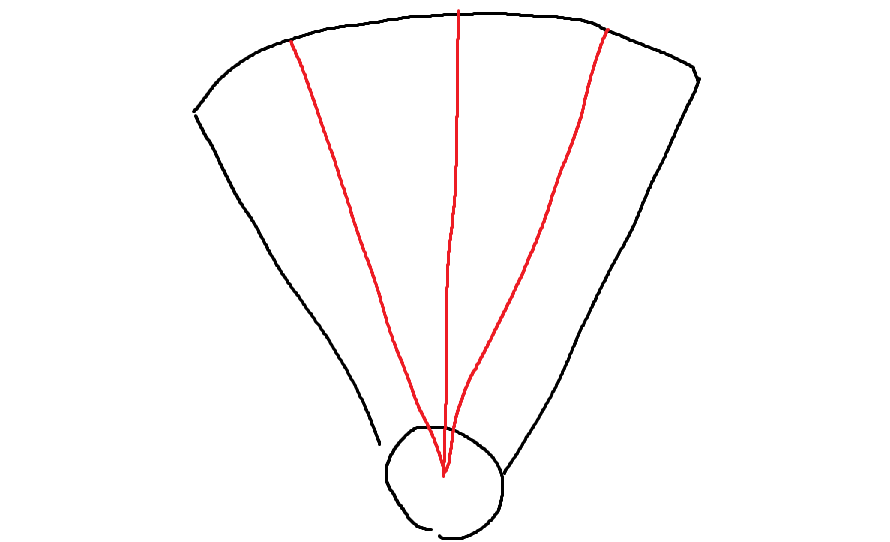 보고자하는 각도, radius(길이), meshresolution(삼각형을 얼마나 많이 그리는 지) 이 세가지의 정보를 토대로 보고자 하는 부채꼴 모양을 삼각형으로 나누어서 그리게 된다.