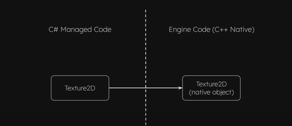 실제로 Unity Engine은 C#의 Managed shell과 C++로 이루어진 Native 엔진 코드로 이루어져 있다. C#에 할당된 오브젝트를 Wrapper object, C++에 할당된 오브젝트를 Native Object라고 부르겠다. 잠깐 설명하고 넘어가자면, 실질적인 오브젝트는 Native Object로 실직적인 process는 여기에 존재한다. Wrapper obect는 이 native object에 대한 pointer이다.