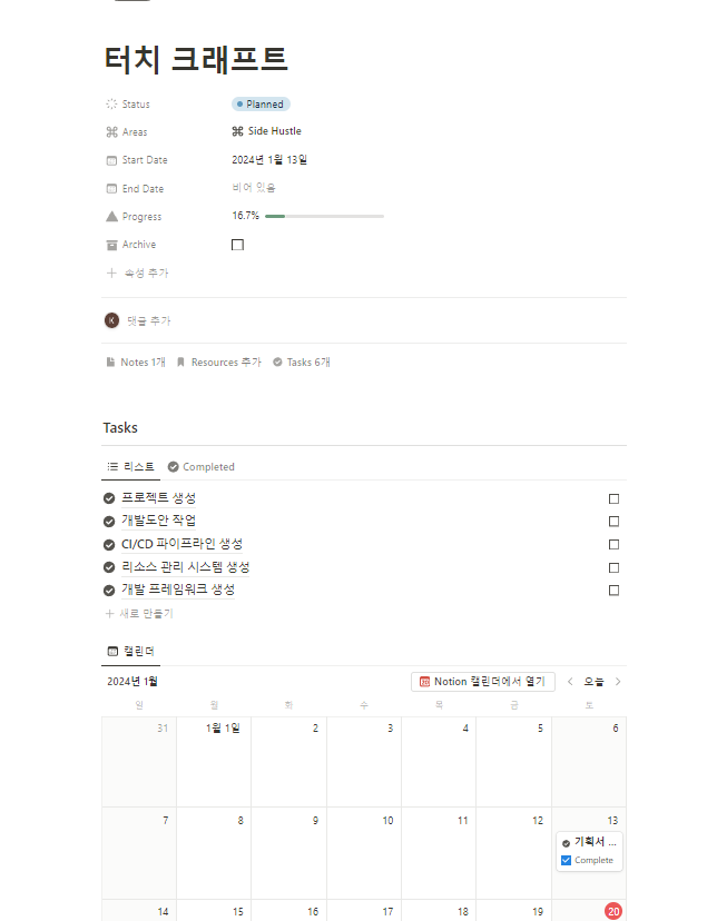 프로젝트의 전체적인 관리(사용 리소스, 중간 이슈, 업무관리, 스케줄 관리 등)는 노션으로 할 예정이다.